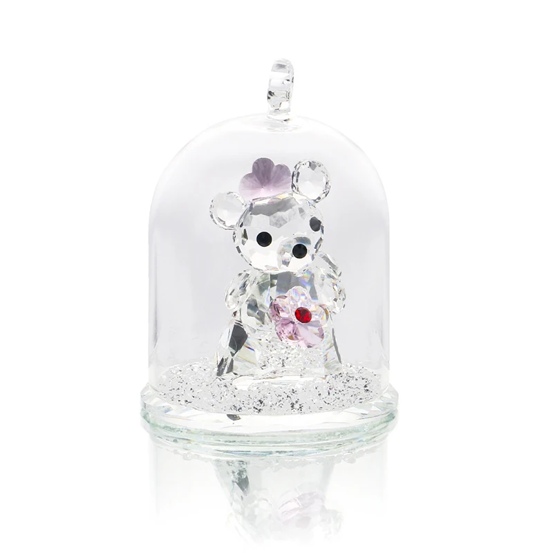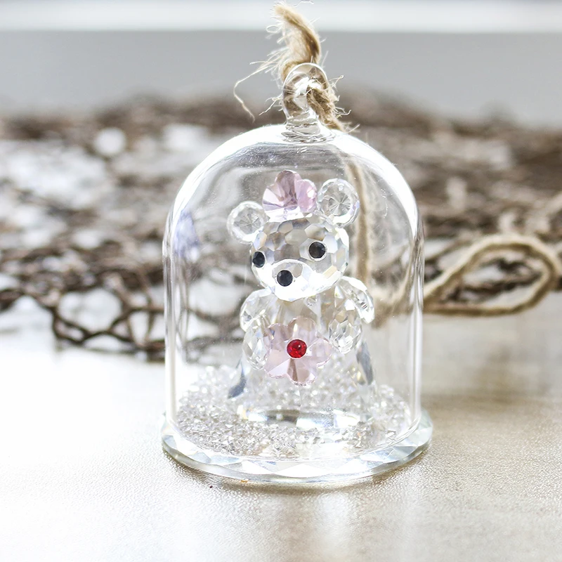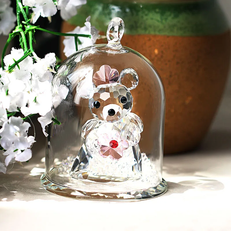 H&D Vintage Valentine's Gift Crystal Cute Bear With Flower in Terrarium Paperweight Souvenir Home W